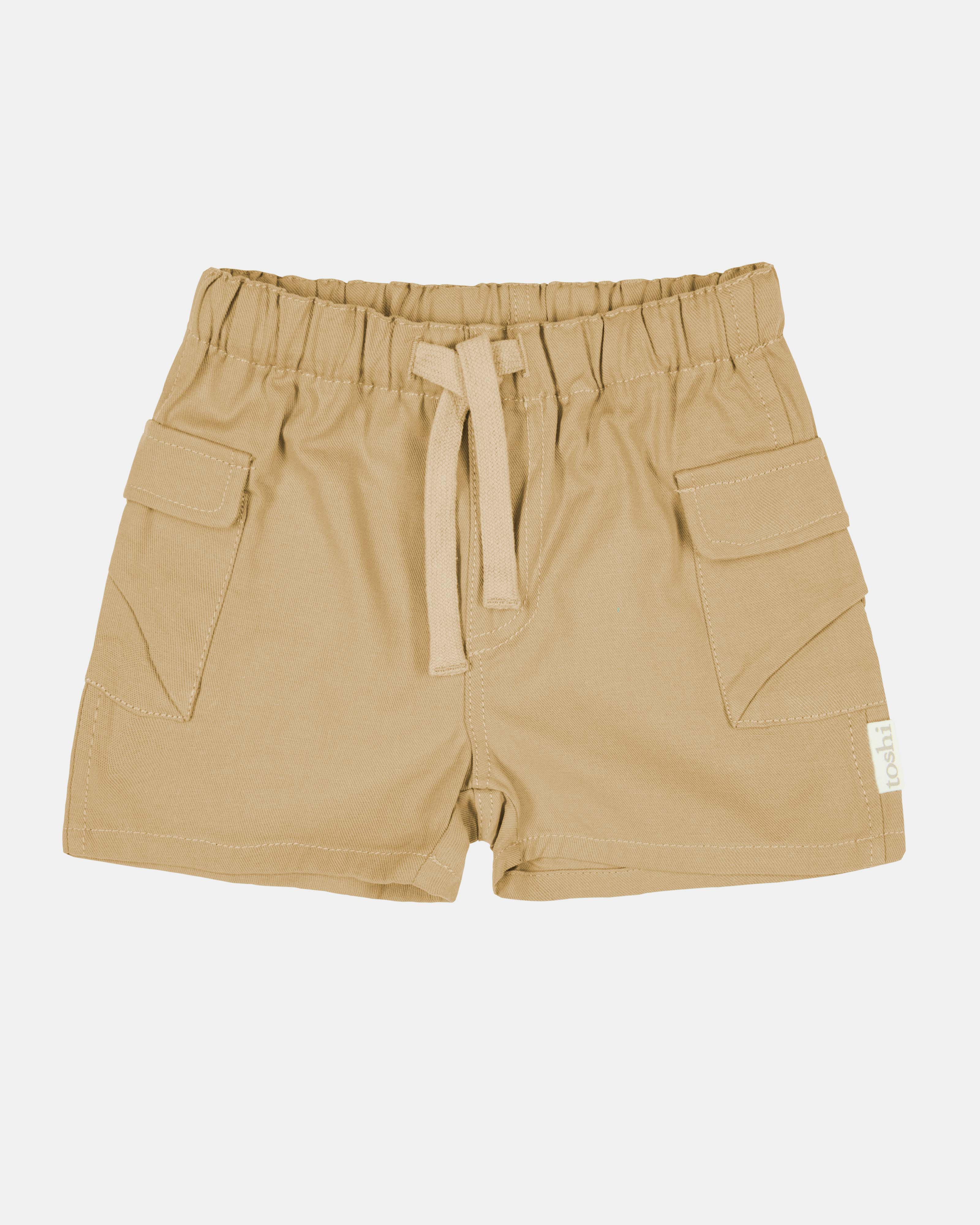 Baby Shorts Billy Driftwood feature a solid brown colour and cargo styling for a street-inspired look. Designed in Australia, these shorts offer functional side pockets and classic tones for versatile, transeasonal layering.