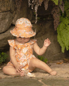 The Toshi romper is reminiscent of bygone days and is the perfect look for fun baby occasions. Flattering frills create a pretty, feminine style and the open back is light and playful. The romper has shoulder ties for adjustable sizing and convenient dressing. Elasticised waistband and leg openings offer greater flexibility for a snug fit. Press studs on the pants create convenient nappy changes. The Toshi Romper is ideal for baby play and smart family occasions. An original and exclusive Toshi print design is featured.